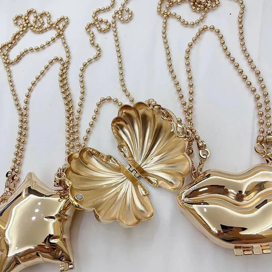 2024 New Metal Mini Lipstick Bags for Women High Quality Shoulder Bag Fashion Flower Satche Women's Accessory Bag