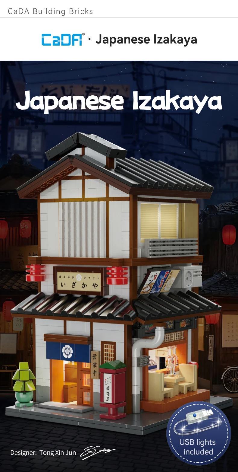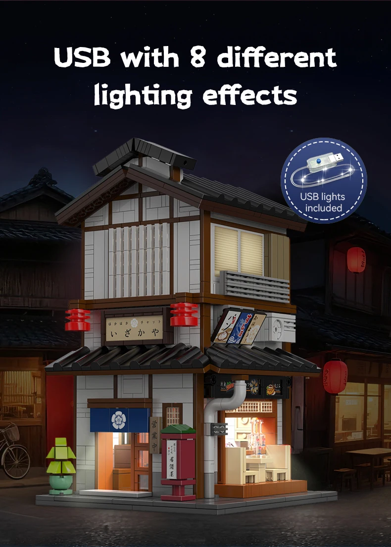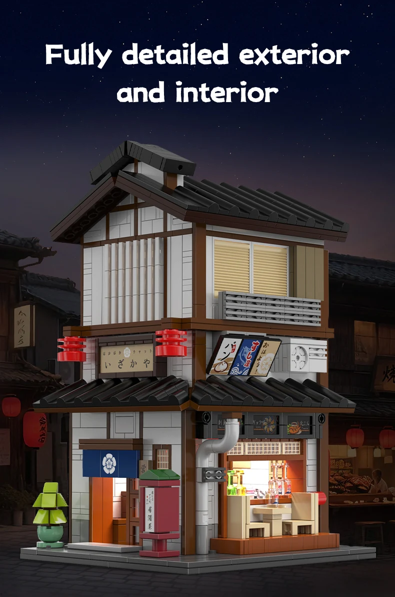 Cada MOC Japanese City Street View Yakitori Style Izakaya Building Blocks Yakitoriya House Children Toy for Gifts