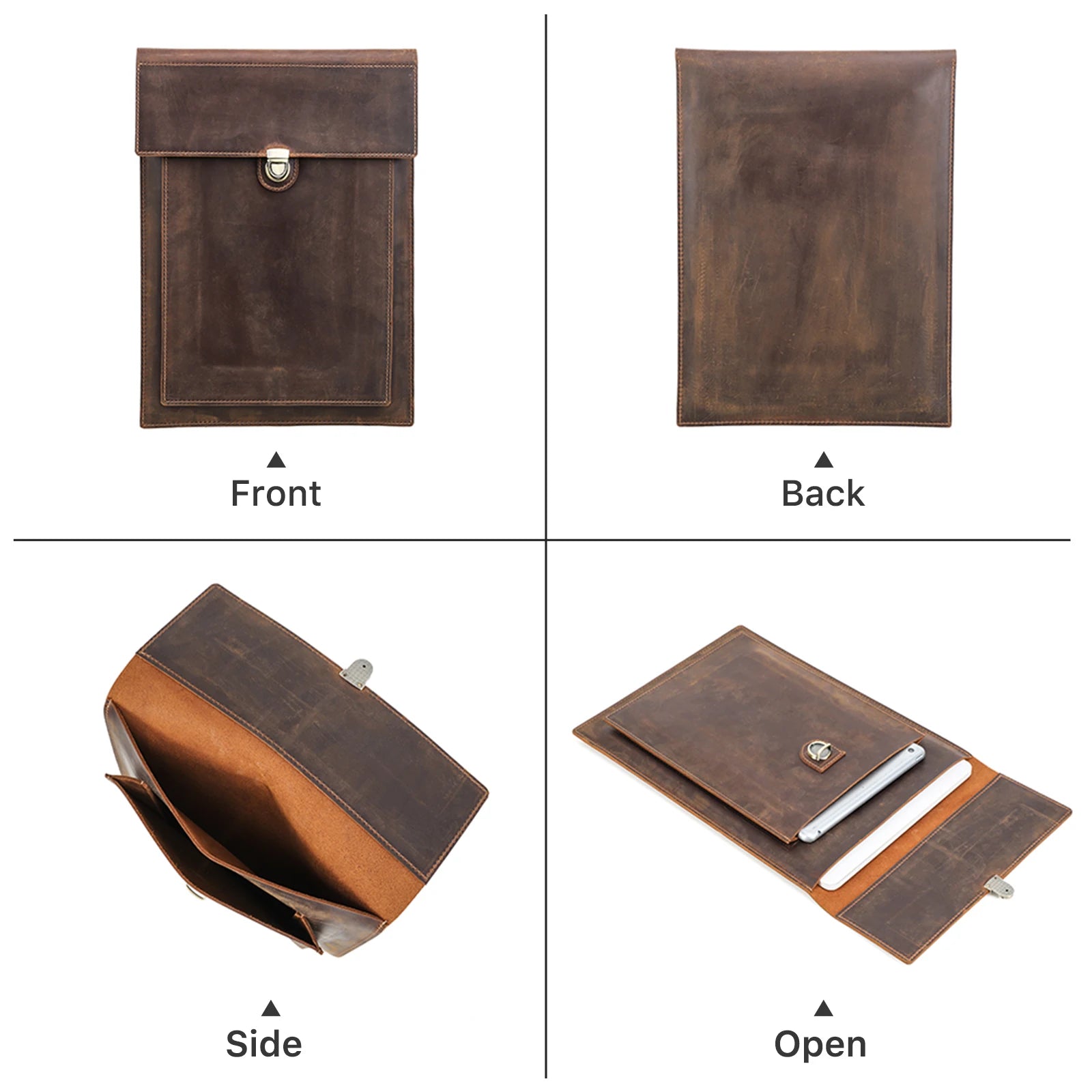 Genuine Leather Laptop Case For Macbook Pro Air 13 14 15 16 Inch Sleeve Case For iPad 10.5 11 12.9 Inch Notebook Cover Carry Bag
