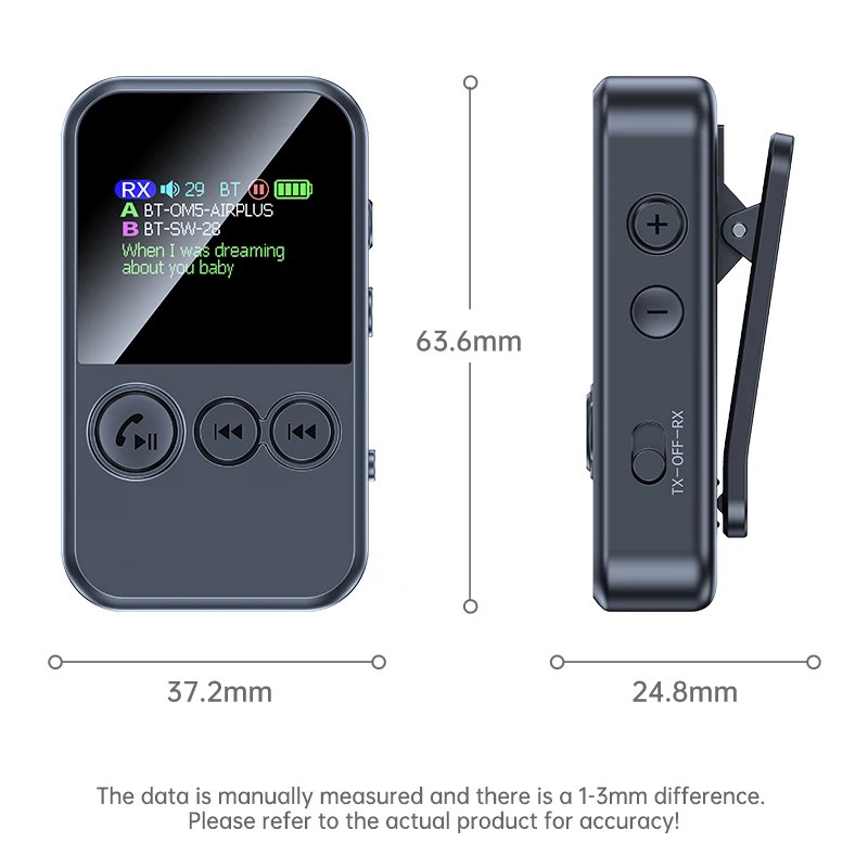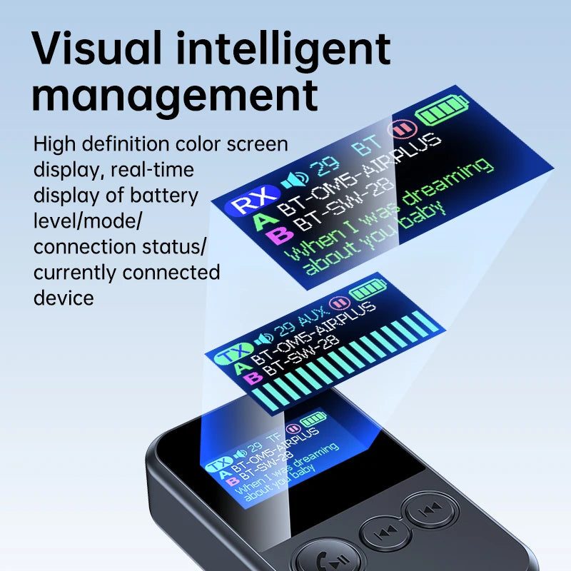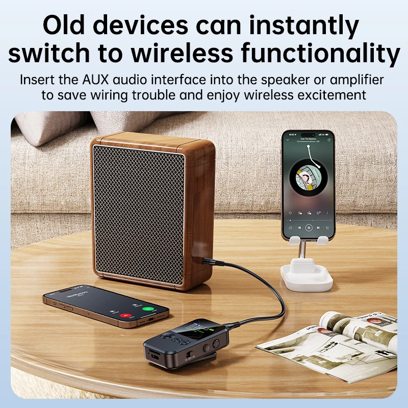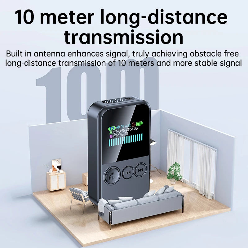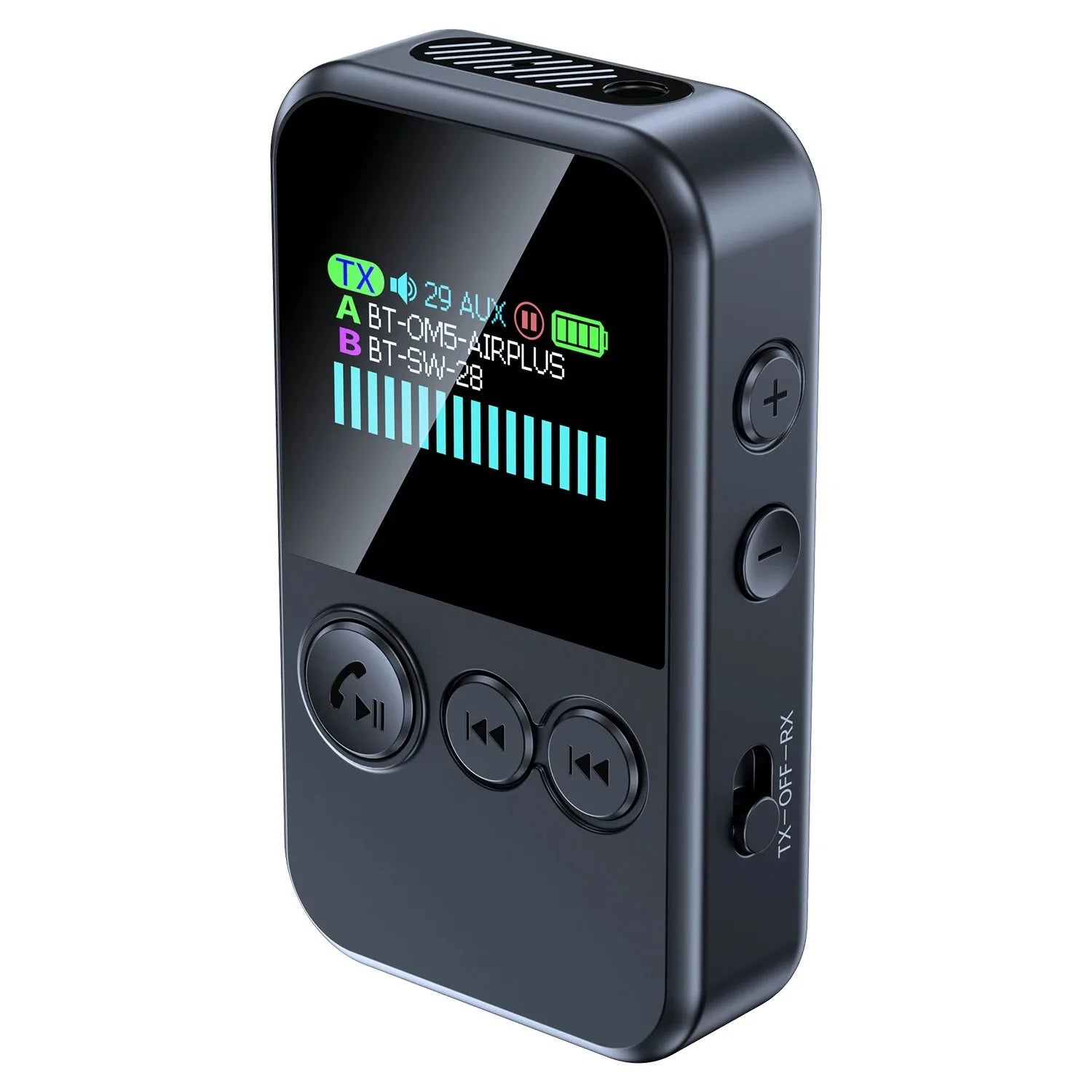 Lavalier Bluetooth 5.4 Audio Receiver Transmitter 3.5mm AUX TF Card Play Wireless Adapter with LCD Display For PC TV Speaker